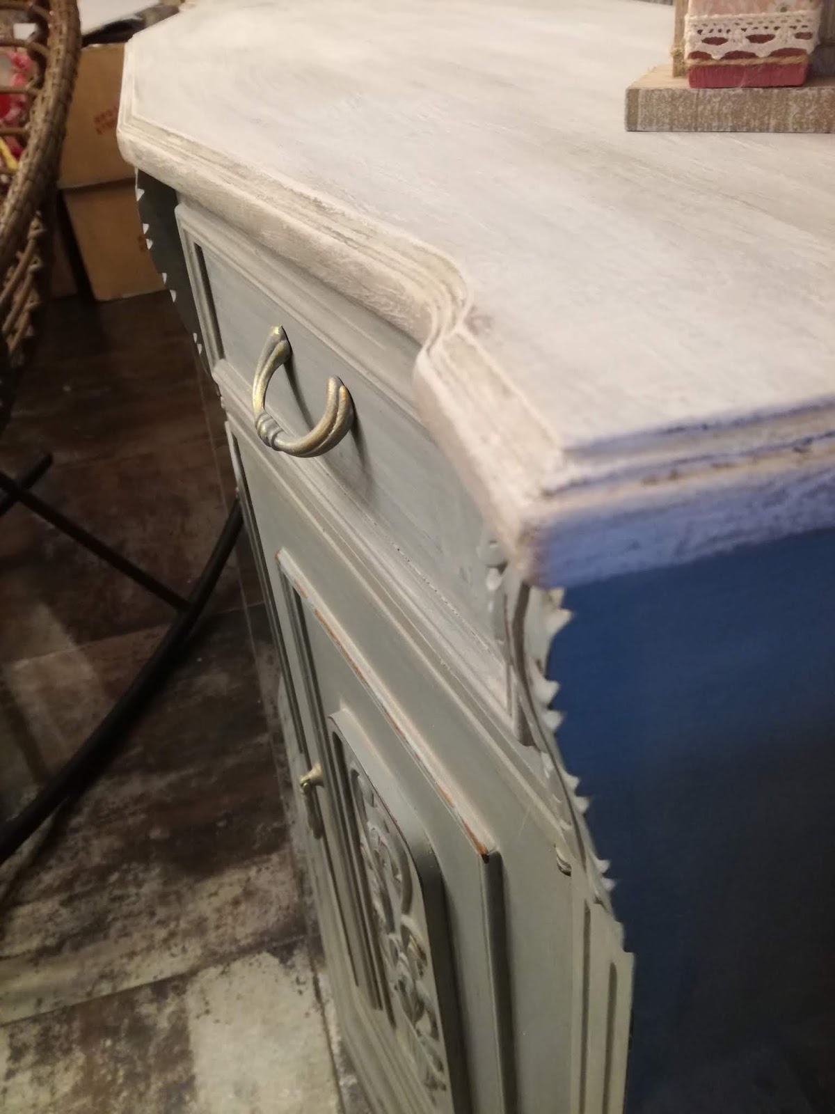 Ήθελα να δημιουργήσω το εφέ ντεκαπέ ξύλου στο καπάκι ενός μπουφέ και με αυτό τον τρόπο να κάνω το κάνω να ταιριάξει ως διχρωμία με το απαλό χρώμα του Duck Egg Blue με το οποίο αρχικά τον είχα βάψει.