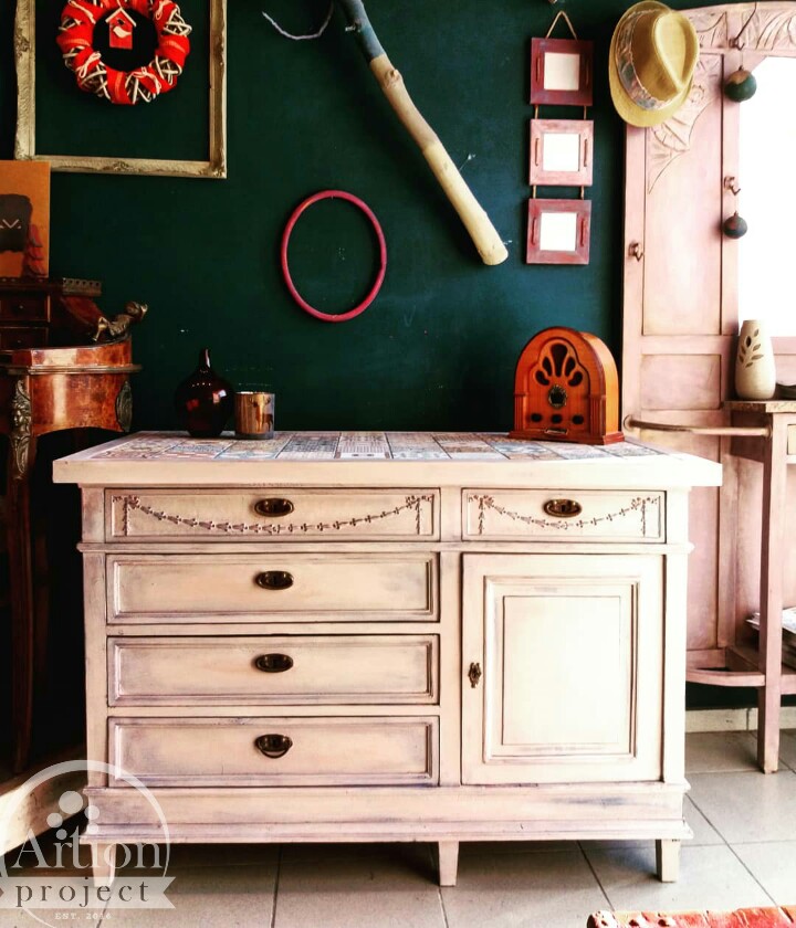 Χρησιμοποίησε Provence σαν βάση και έκανε Wash με Aubusson Blue για όλο τον μπουφέ.
