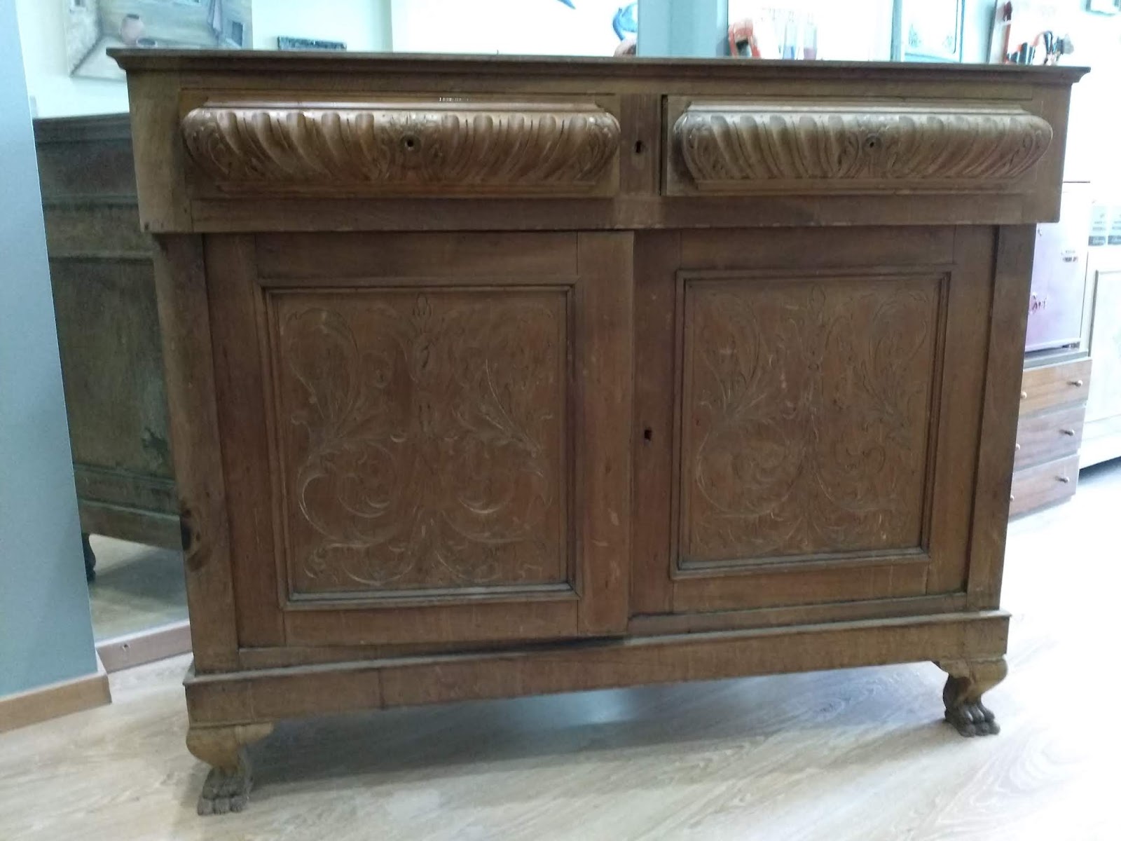 Όποιος δεν έχει σπίτι του αυτόν τον μπουφέ …πάει και τον αγοράζει . Είμαι σίγουρη.  Ήταν σε όλα τα σπίτια. Είχε στους απίστευτους χώρους που διαθέτει τα γυαλικά, τα μαχαιροπήρουνα, τα καλά όχι τα καθημερινά, είχε στο συρτάρι το λινό τραπεζομάντηλο για τις κυριακές και σε μια γωνία πίσω πίσω είχε τα φοντανάκια ή τα σοκολατάκια. Ποιός δεν άνοιξε αυτό το έπιπλο το μεσημέρι που κοιμόντουσαν οι γονείς για να κλέψει ένα γλυκάκι. Όχι πείτε μου? ποιός?  Πέρασαν τα χρόνια , κάπου πετάχτηκε, κάπου το δώσαμε, σε κάποια αποθήκη είναι και τον θέλουμε πίσω… αλλά λίγο πειραγμένο για να ταιριάζει στα σπίτια μας. Βάψτε τον λοιπόν μπας και γυρίσει πίσω λίγη απ την γλύκα της παιδικής μας ηλικίας.